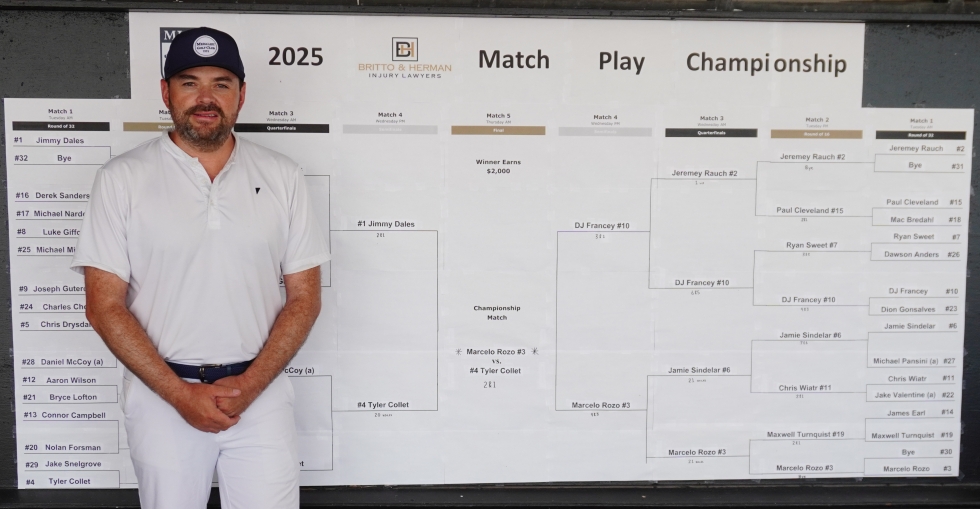 PALM BEACH GARDENS, Fla. - Marceo Rozo from Bogota, Colombia defeats Tyler Collet 2&1 to win the 2025 Match Play Championship presented by Britto & Herman Injury Lawyers. Rozo got off to any early lead 2 up thru 9 but Collet fought back with a birdie on 10 to win the hole. Rozo would win 11 with a birdie to go back to 2 up. Collet won th... more