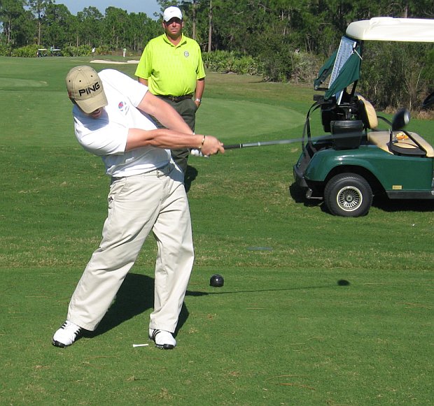 ![]() Scott Ford and Sal Spallone tie at 3-under par 69 With darkness and a storm approaching, Scott & Sal were declared Co-Champions February 9, 2010 PALM BEACH GARDENS, Fla. – Scott Ford (above) of Palm Beach Gardens and Sal Spallone (below) of Vero Beach were declared co-champions Tuesday when darkness prevented a playoff in a Minor League Golf Tour event on the Haig course at PGA National. ![]() Each player eagled the par-5 first hole. Ford added four birdies, a bogey and a double bogey. Spallone also made five birdies and four bogeys. Heretofore, Ford had five MLGT wins, Spallone three. Each received $812.50 from the $7,759 purse. Playing in the final group of the day, Robert Mcknight asked where the lead was at as he teed off on the 8th hole (his 17th). After finding out he was 2 back with 2 to play, he hit it inside the leather, made birdie, and then had a good roll at another on his final hole that missed left. He was joined at 2-under par 70 by Ryan Garrity, Rich Hanna, David Schuster, Vaughn Snyder and Amateur Billy Hemstock.