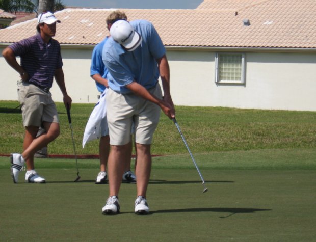 ![]() Brett Bergeron fires 7-under par 65, Leads Q-School Contest Mike Auterson and Nick Kenney tie for second with six under par 66's April 5, 2010 BOCA RATON, Fla. – Brett Bergeron of La Place, La. made eight birdies, including ones on sixteen, seventeen and eighteen to win the MLGT event at Ocean Breeze by 1 shot over Mike Auterson of Milford, Ohio and Canadian Nick Kenney. Bergeron, who won the first MLGT Q-School contest last year now leads the April contest. Mike Auterson shot a pair of 33's while Nick Kenney opened with an eagle at the first hole, 31 on the front nine, and 35 on the back. Their T2 finish was worth $600. Event Results There was $310 in the Skins Pot with 7 skins out worth $44.29 each. Martin Vikstrom eagled the par-5 first hole, JC Deacon eagled the par-5 fourth hole and Brett Bergeron birdied seven and seventeen. Marc Leon made 2 on the long par-3 eleventh hole, Joe Frustachi made 2 on the par-3 fourteenth hole, and Scott Hawley eagled the par-5 eighteenth hole. ![]() |