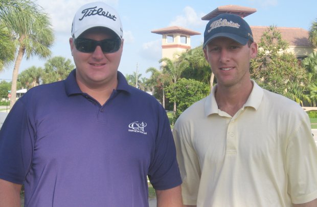 ![]() Eddie Peckels & Brian Friederichs win Team Championship with 63 2 Teams: Bohannon & Burton, Ford and Smith tie for 2nd at 8-under par 64 February 19, 2010 PORT ST. LUCIE, Fla. – Brian Friederichs of Boca Raton scored his second victory of the week on the Minor League Golf Tour, teaming with Eddie Peckels of Pinehurst, N.C., to win a two-man team tournament at the Santa Lucia River Club. They scored a nine under par 63 with a scramble score of 31 on the front and 32, four-ball stroke play, on the back. They eagled the par-5 second hole and birdied Nos. 4, 5, 6, 13, 15, 16 and 17. They earned $800 apiece from the $6,890 purse. Friederichs won an individual event Monday at Jacaranda GC in Plantation, his first pro win. Peckels has one other MLGT victory, on Feb. 2, 2009, at Ocean Breeze GC in Boca Raton. Brett Burton and Derek Bohannon tied for second with Scott Ford and Eugene Smith at 8-under par 64. Jess Daley and Chris Damiano won all the skins with a Driver-Driver eagle on the par-5 fifth hole. Event Results The MLGT plays the final 54-hole Quest February Series tournament Monday through Wednesday at Hammock Creek Golf Club in Palm City where the greens are rolling nicely. |
