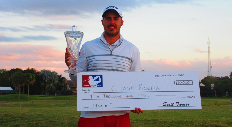CORAL SPRINGS, Fla. – After matching the all-time Minor League Golf Tour scoring record Monday with a 60, Chase Koepka of West Palm Beach, FL held off 90 challengers Tuesday at the Country Club of Coral Springs for his 11th victory on the Jupiter-based mini-tour.