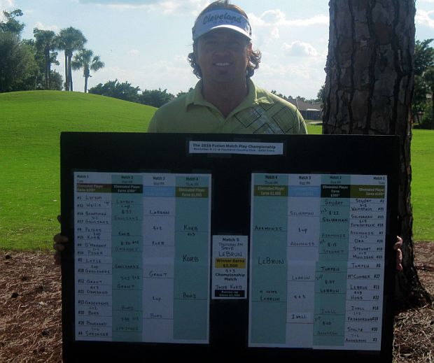LAKE WORTH, Fla. – Steve LeBrun of West Palm Beach made eight birdies on his last 11 holes Thursday enroute to a 4 and 3 victory over Jacob Korb of Newtown, Pa., in the finals of the Fuzion-Minor League Golf Tour’s fourth annual match play championship.