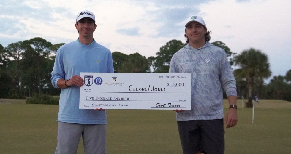 VERO BEACH, Fla. - Ty Celone from Long Sault, Ontario and Tyler Jones from Westerville, OH fired 134 (66-68) to tie for the win in 2026 Qualifying School Contest #1 at Sandridge Golf Club.
